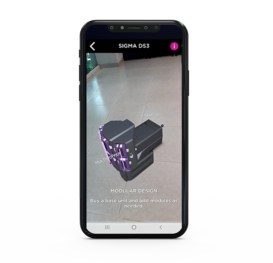 Eche un vistazo virtual a la impresora directa a tarjeta SIGMA. Coloque la impresora sobre su propia mesa, gírela 360 grados, acerque el zoom y más.