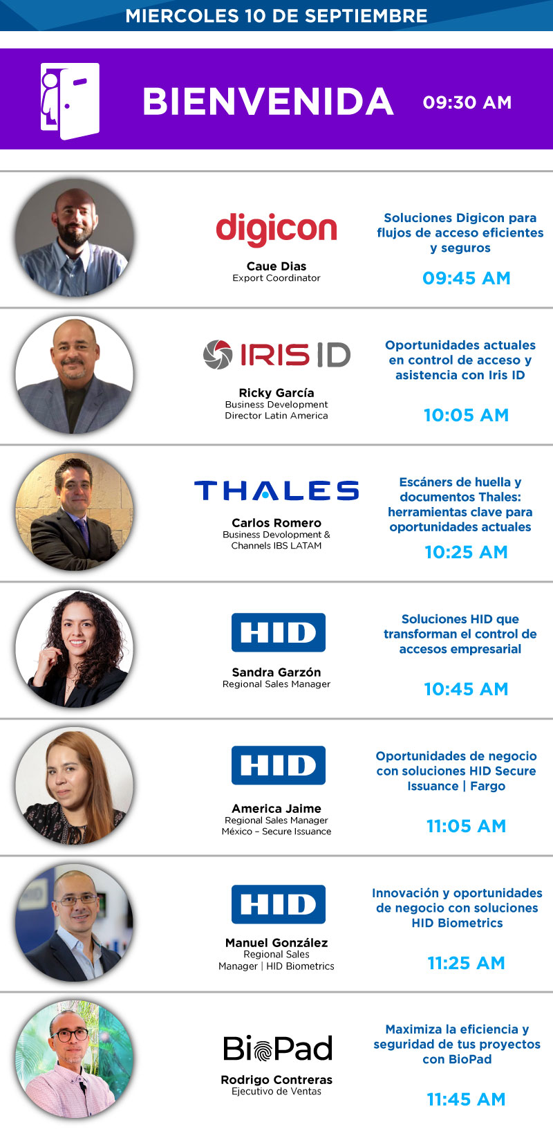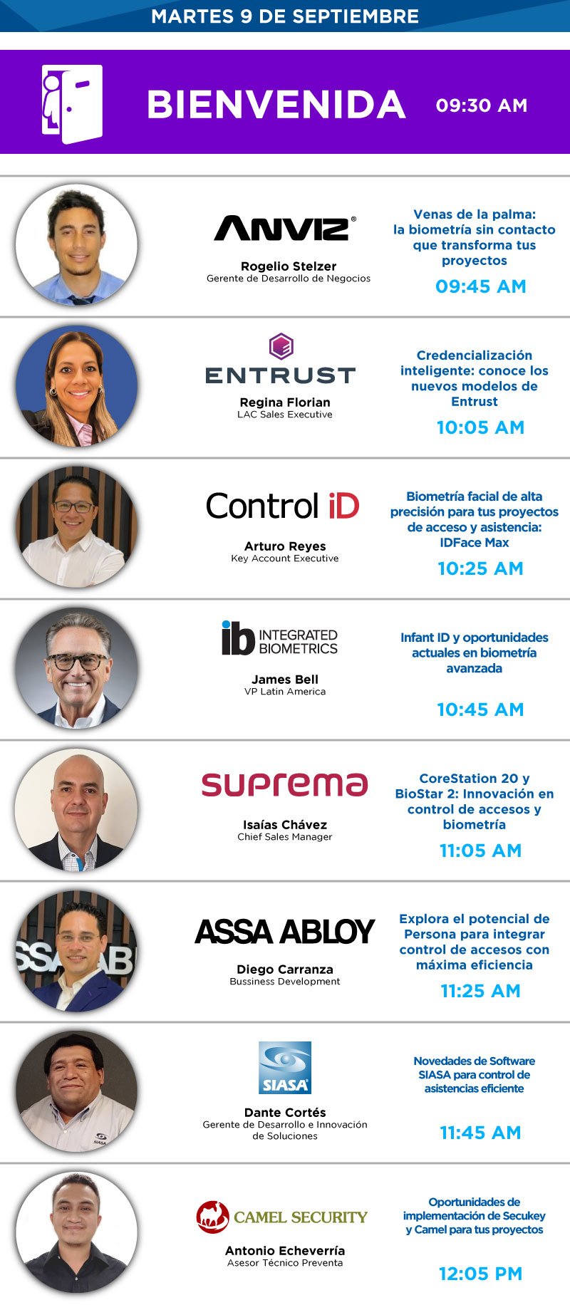 Los días 9 y 10 de septiembre 2025, súmate a nuestra expo online y conoce de la mano de los fabricantes las soluciones más recientes en control de accesos, biometría, credencialización y asistencia.